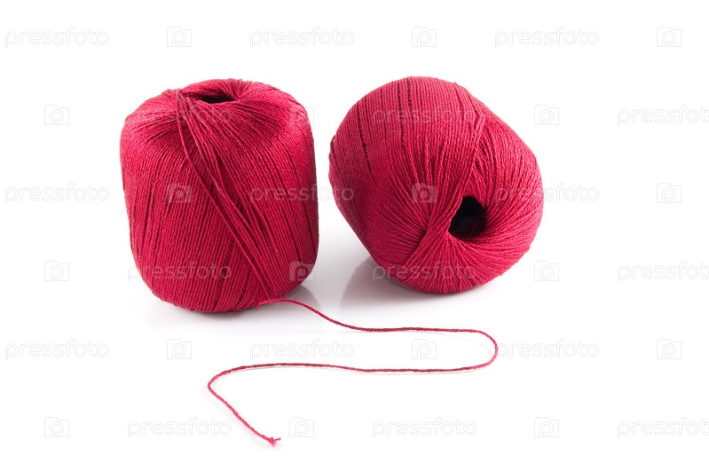 Две красные катушки ниток на белом фоне