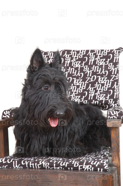 Щенок шотландского терьере на стуле