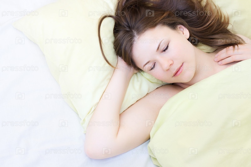 Спящая молодая девушка на белом фоне