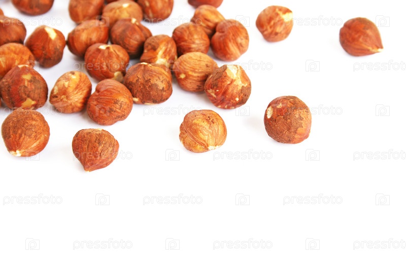Лесные орехи на белом фоне