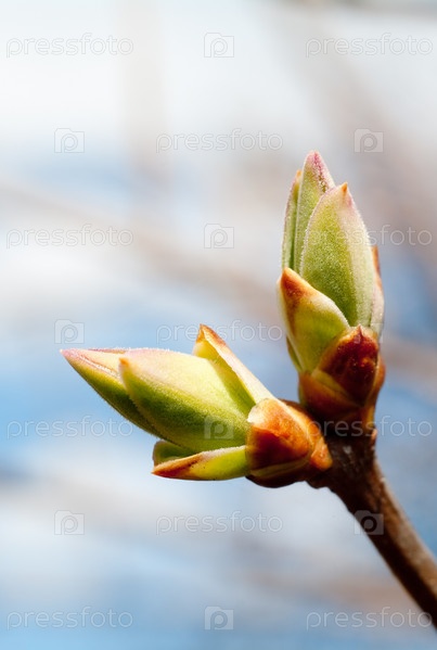 Ветка сирени с почками крупным планом