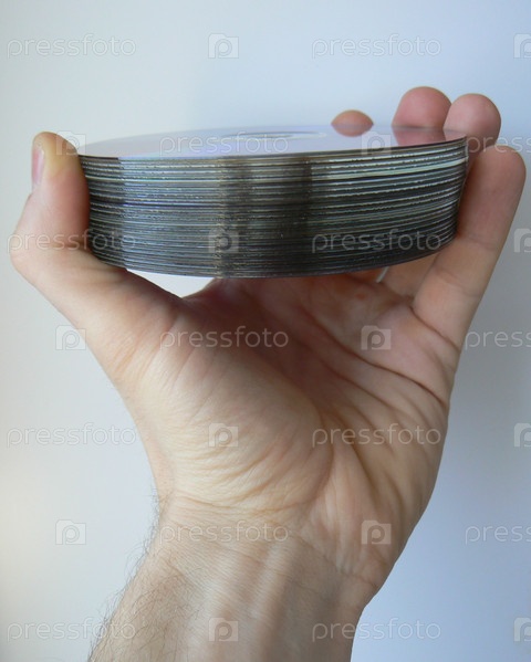 Стопка компакт-дисков в руке