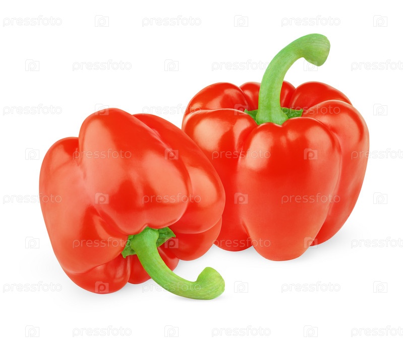 Два сладких красных перца, изолированы на белом фоне