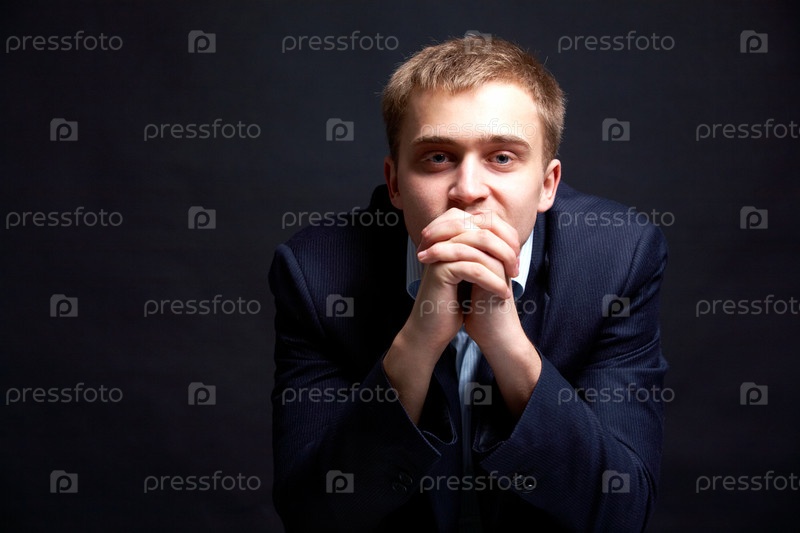 Портрет задумчивого мужчины на черном фоне