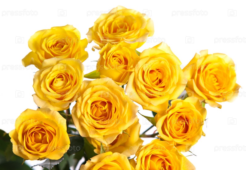 Букет желтых роз на белом фоне