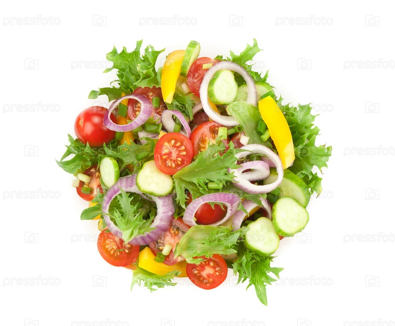 Салат из свежих овощей, изолировано на белом фоне