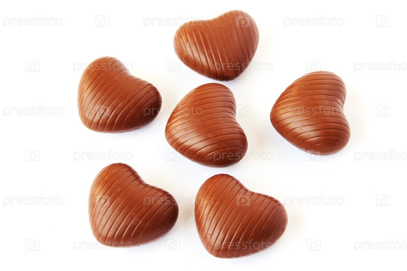 Конфеты в форме сердца на белом фоне