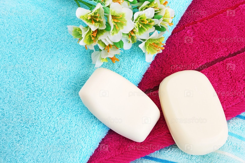 Полотенца и мыло крупным планом