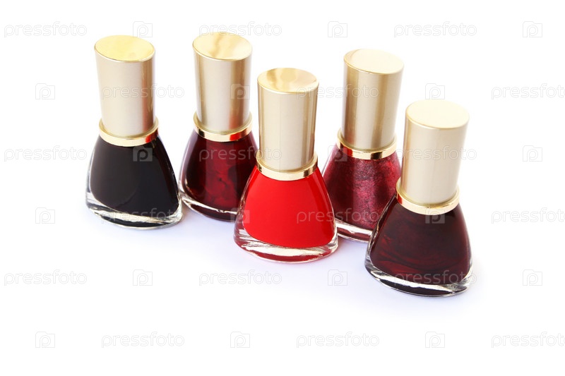 Разноцветный лак для ногтей на белом фоне