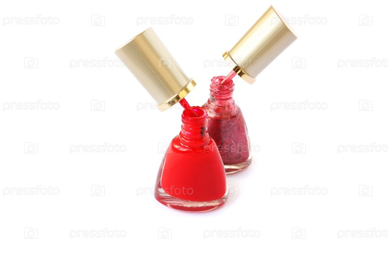 Яркие лаки для ногтей на белом фоне