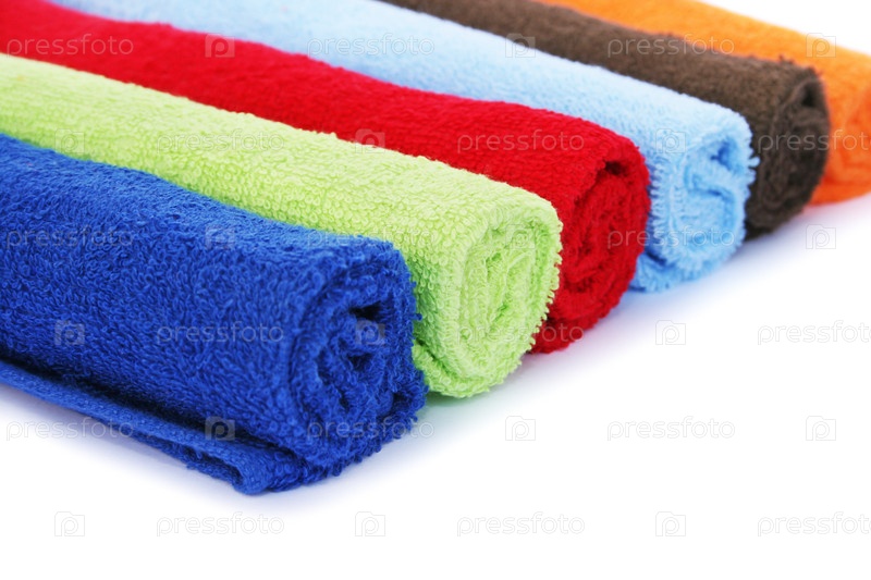 Разноцветные полотенца на белом фоне