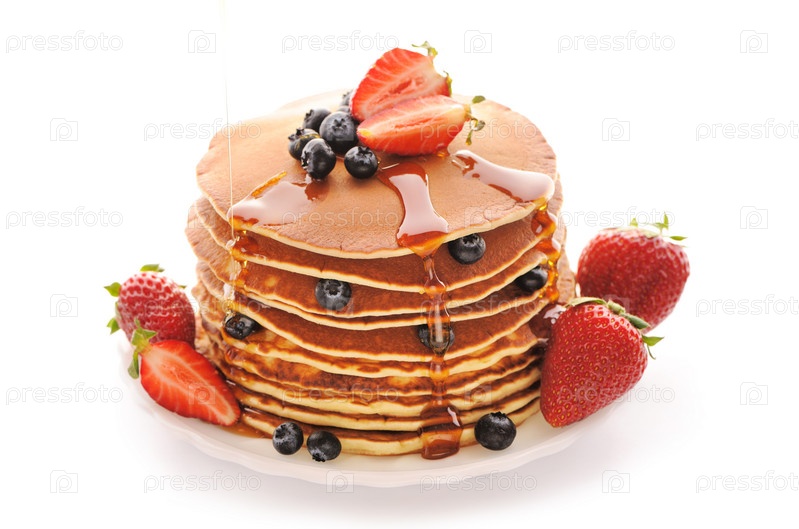 Блинчики с клубникой и голубикой