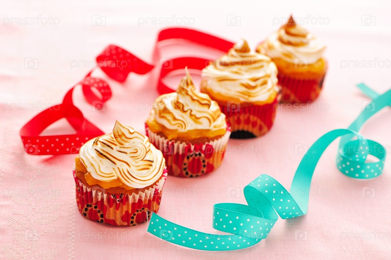 Кексы с взбитыми сливками и глазурью на белом фоне
