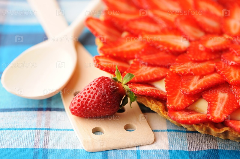 Домашний клубничный пирог на тарелке