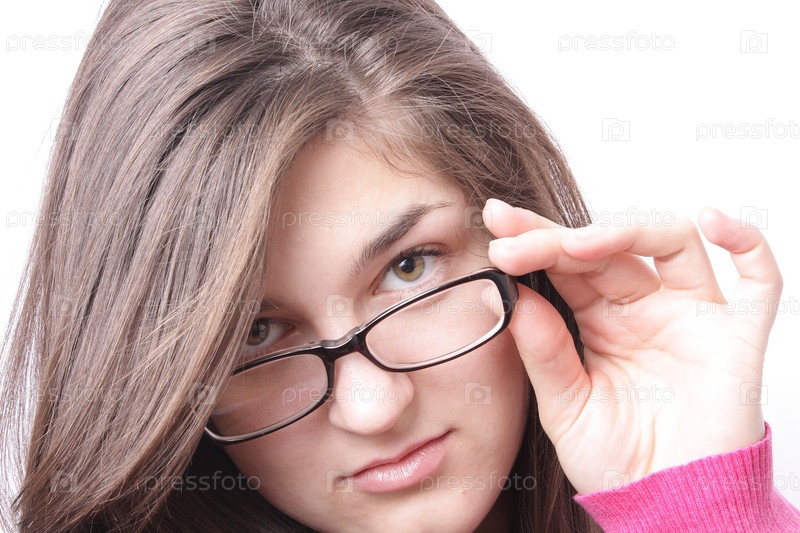 Симпатичная девушка придерживает рукой очки