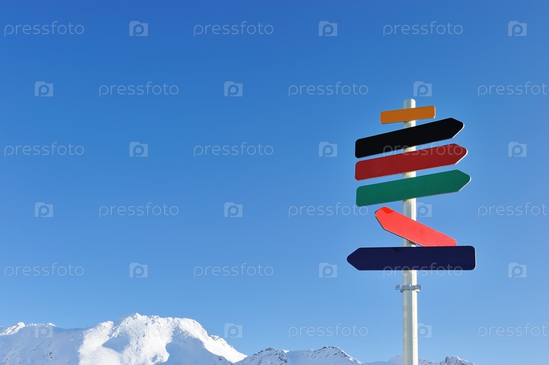 Указатель со стрелками на горнолыжном курорте Валь-д'Изер, Альпы, Франция
