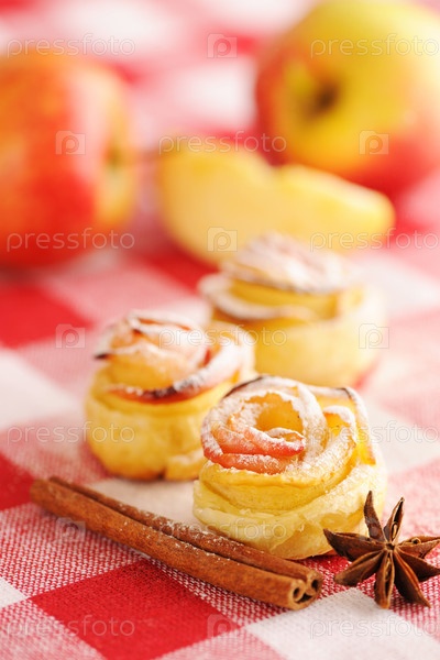Яблочные пирожки на красной скатерти