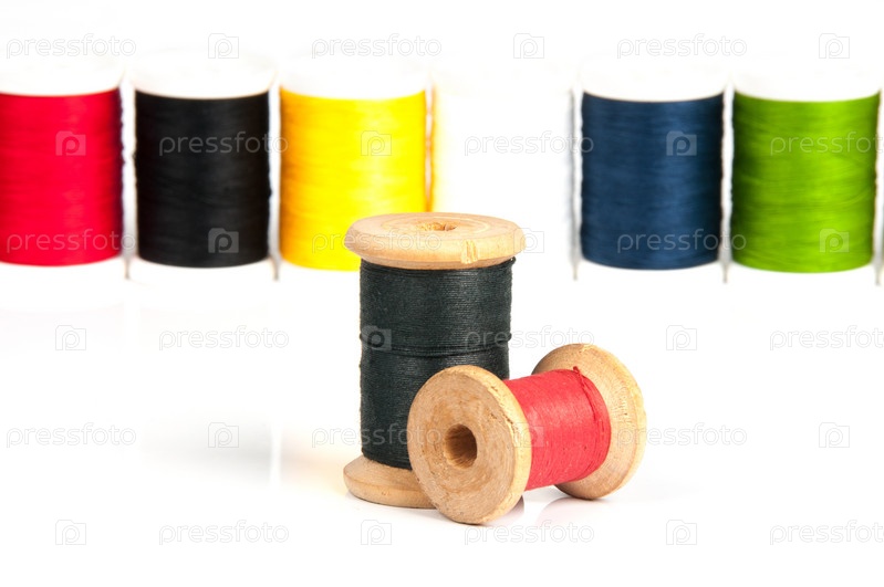 Две катушки ниток на фоне катушек