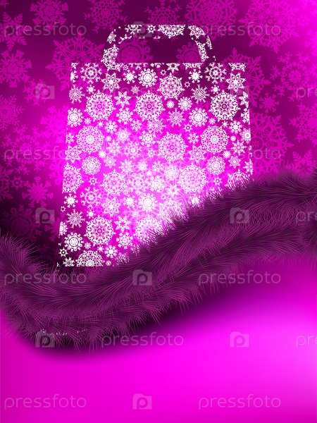 Сумка для покупок из снежинок на сиреневом фоне