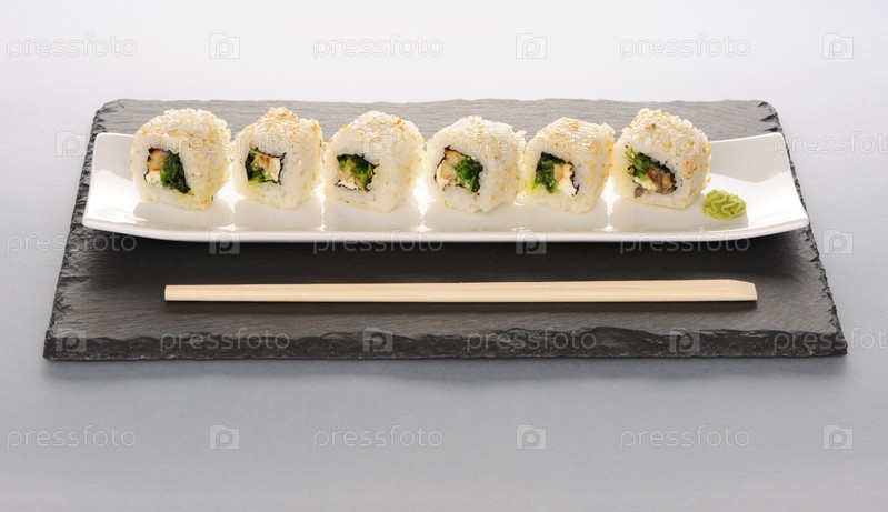 Суши ролл на тарелке