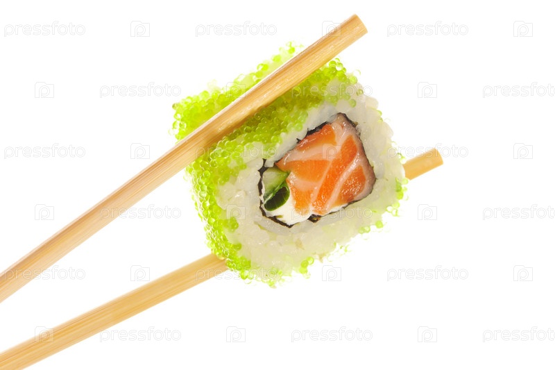 Суши ролл с палочками, изолировано на белом фоне