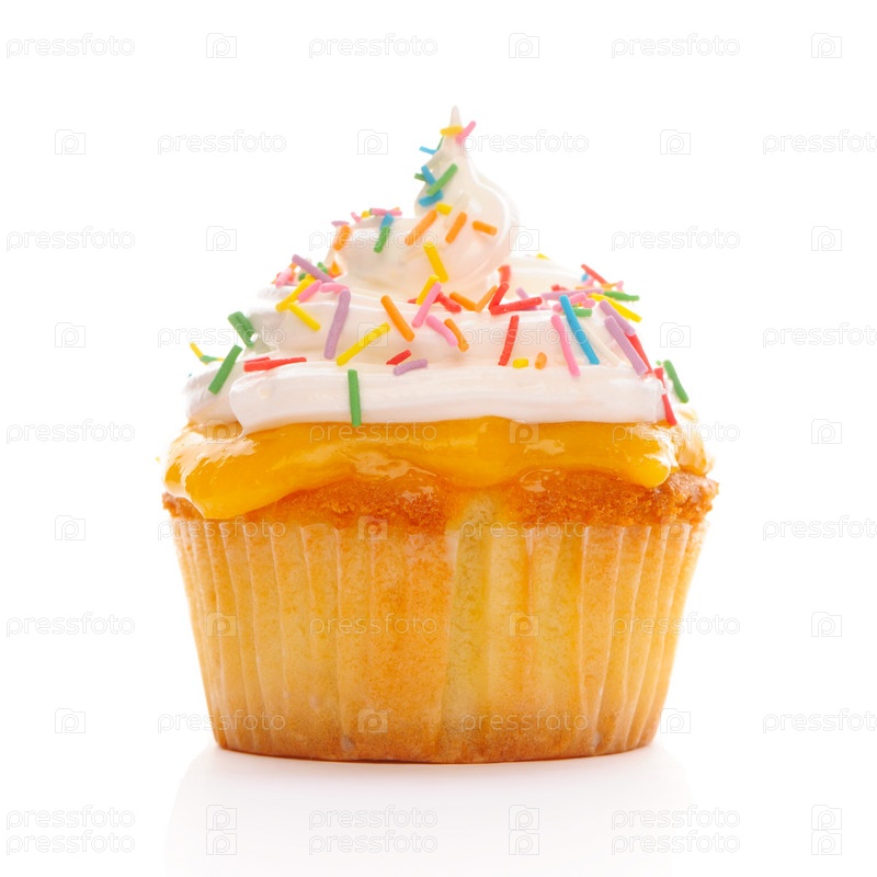 Кекс с взбитыми сливками, изолирован на белом фоне