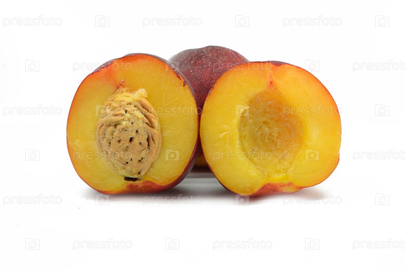 Разрезанный нектарин на белом фоне