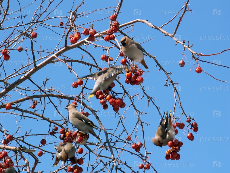 Свиристели поедают ранетки
