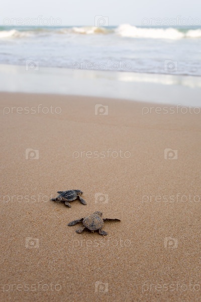 Вылупившиеся черепахи ползут к океану