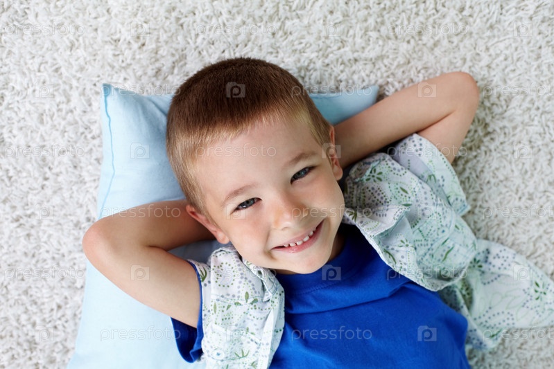 Портрет улыбающегося мальчика, лежащего на подушке