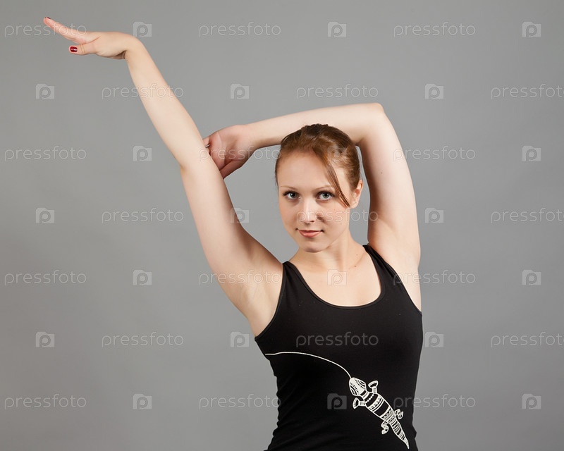 Привлекательная девушка показывает гимнастические упражнения