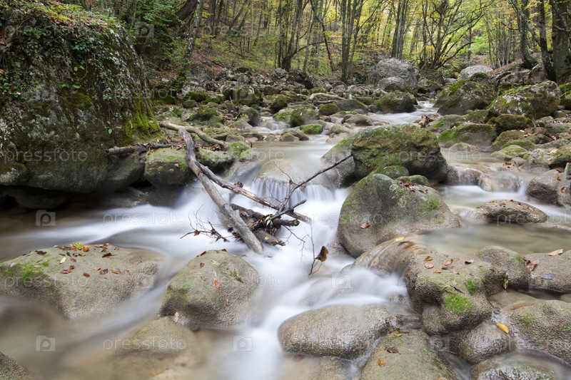 Горный ручей в осеннем лесу