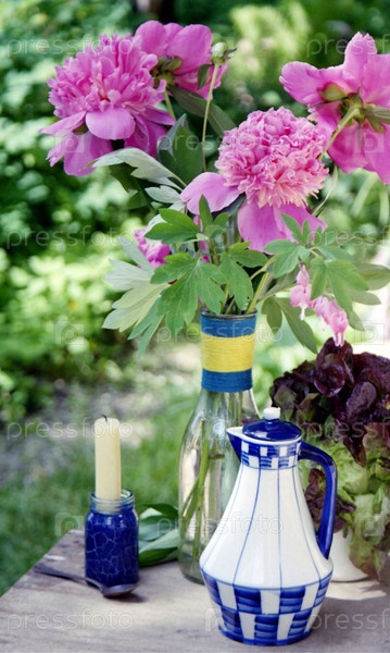 Натюрморт с кувшином, пионами, свечой