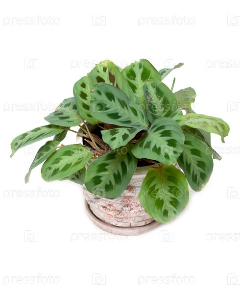 Зеленый домашний цветок в горшке на белом фоне