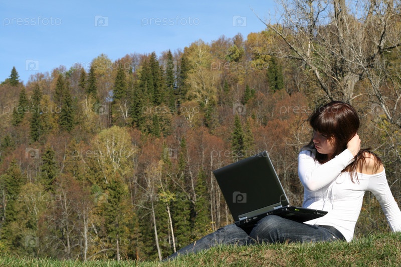 Девушка с ноутбуком на природе