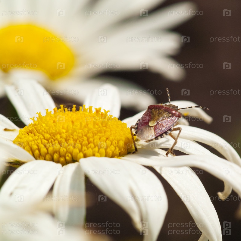 Красивый цветок, белая ромашка, жук