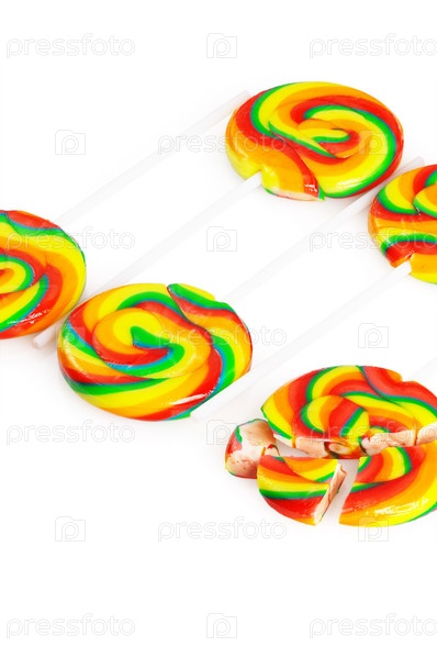 Яркие сахарные леденцы, изолированные на белом фоне