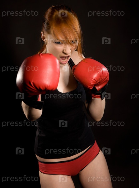 Молодая привлекательная женщина-боксер на тренировке