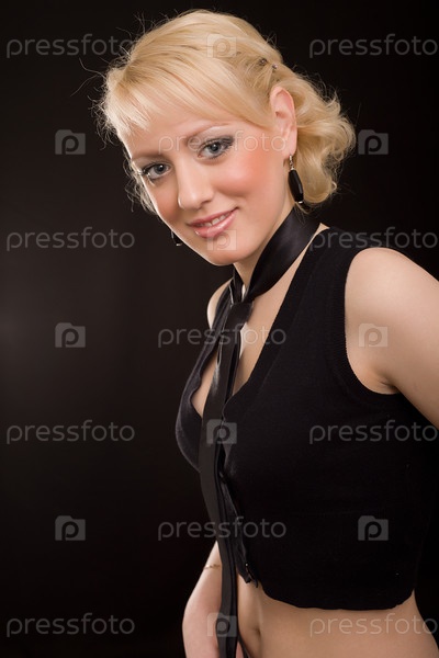 Молодая красивая блондинка на черном фоне