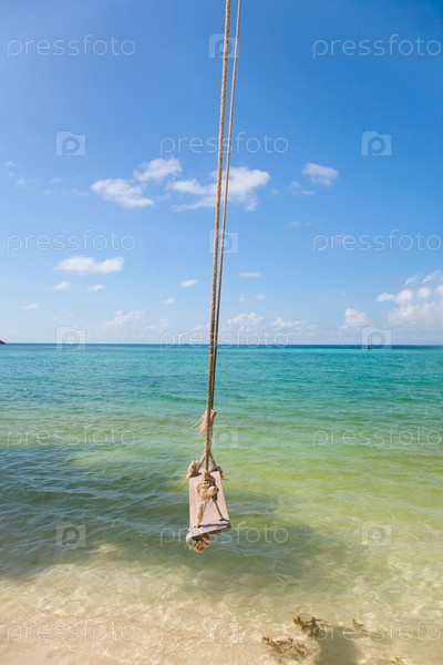 Качели на тропическом пляже с пальмами
