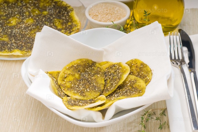 Ливанский хлеб с тимьяном, кунжутом и оливковым маслом