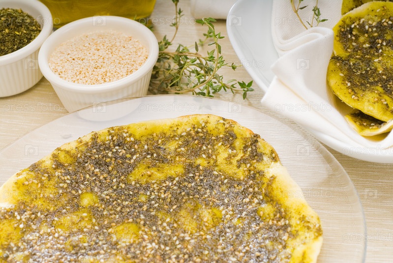 Ливанский хлеб с тимьяном, кунжутом и оливковым маслом