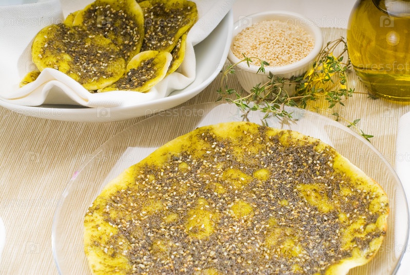 Ливанский хлеб с тимьяном, кунжутом и оливковым маслом