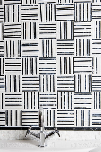 Смеситель на фоне оригинальной черно-белой плитки