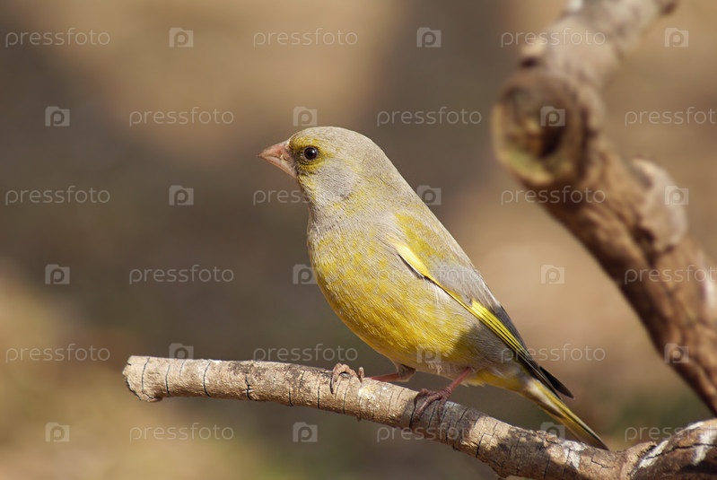 Птица зеленушка на ветке дерева