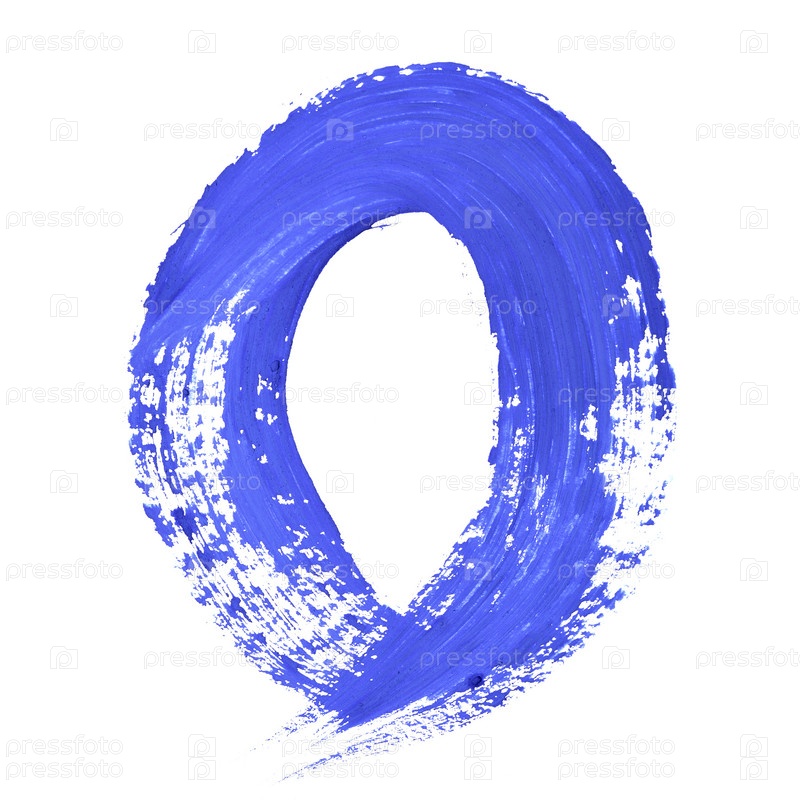 Синяя рукописная буква O на белом фоне