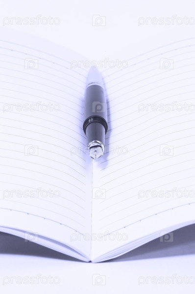 Черная ручка на открытом блокноте, синий фильтр