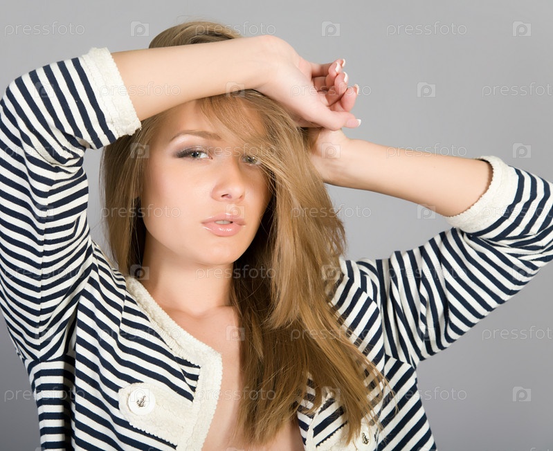 Портрет красивой девушки в полосатой кофте