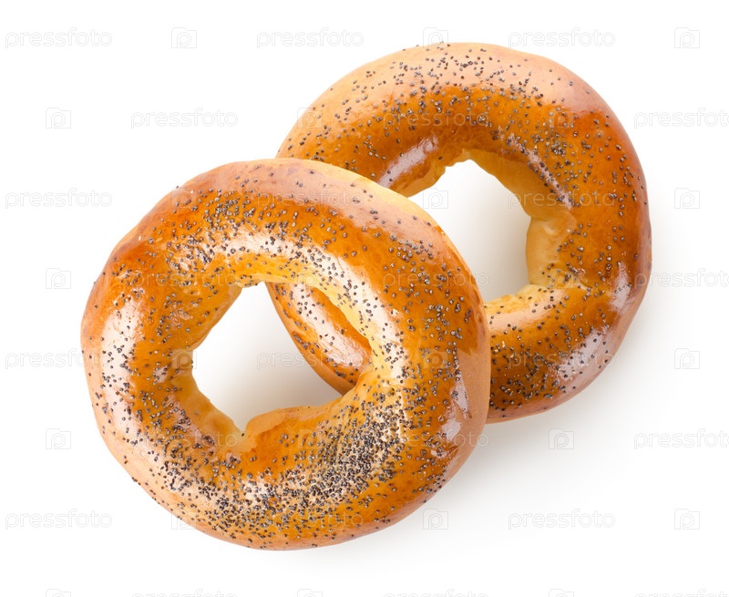 Бублики с маком, изолированные на белом фоне