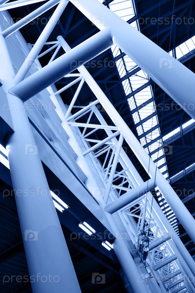 Абстрактное архитектурное сооружение, тонированное в синий цвет